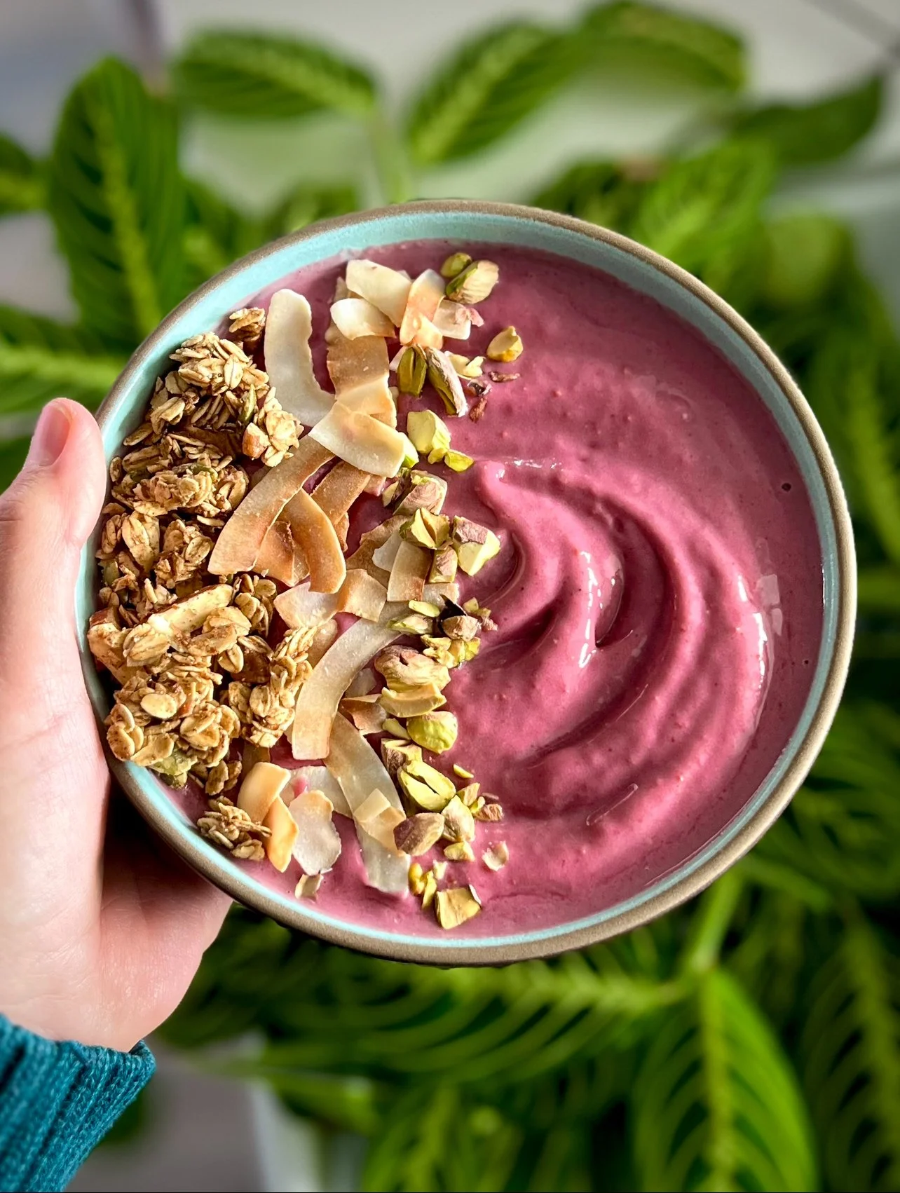 Cool and creamy with just the right mix of sweet and tart, they are full of vibrant flavor and give the best kind of energy. The toppings add the perfect crunch and they keep me full without feeling heavy. They are such a good post workout option or anytime you want a refreshing berry powered boost!